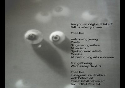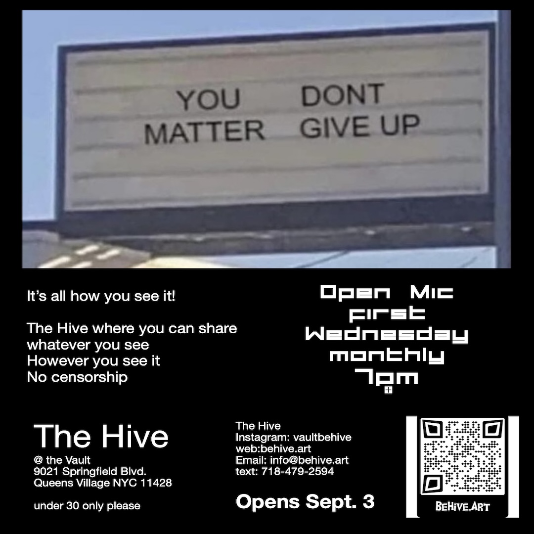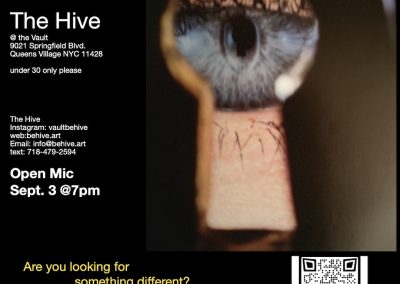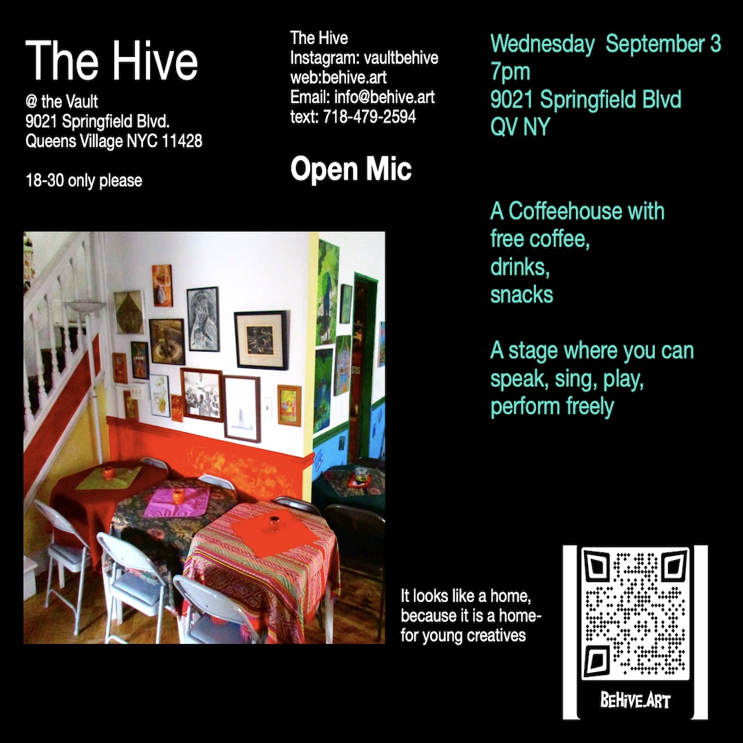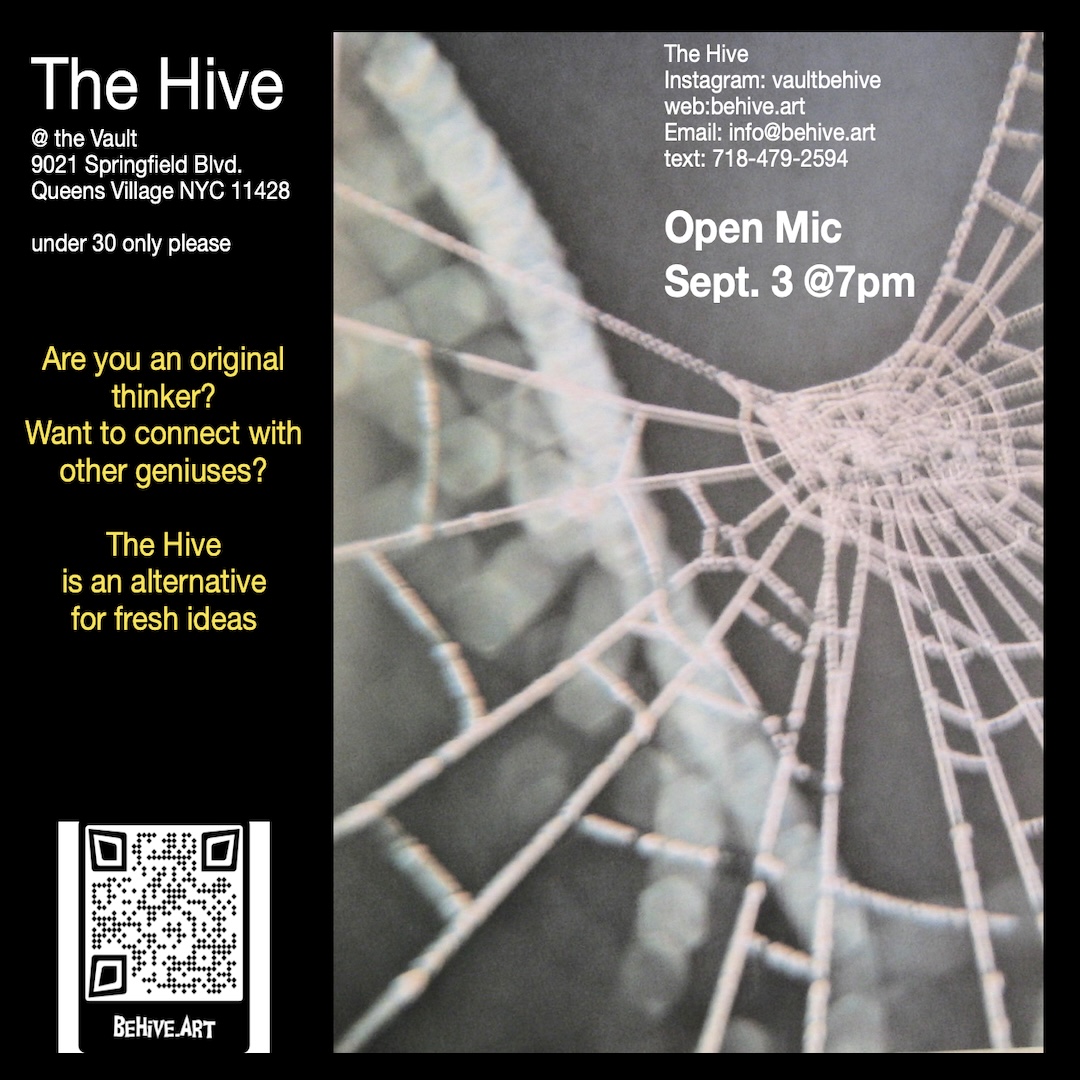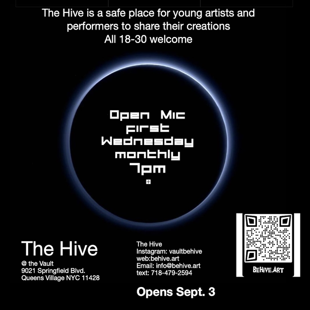 The Hive is a dynamic think tank dedicated to fostering artistic innovation among young creatives. Located at The Vault in Queens Village, NY, our mission is to provide a nurturing environment where teenage performance artists can explore, share, and develop their ideas. We believe in the power of collaboration and aim to be the catalyst for a new wave of artistic expression. Join us in creating a vibrant community that celebrates performance art and empowers the next generation of visionaries.